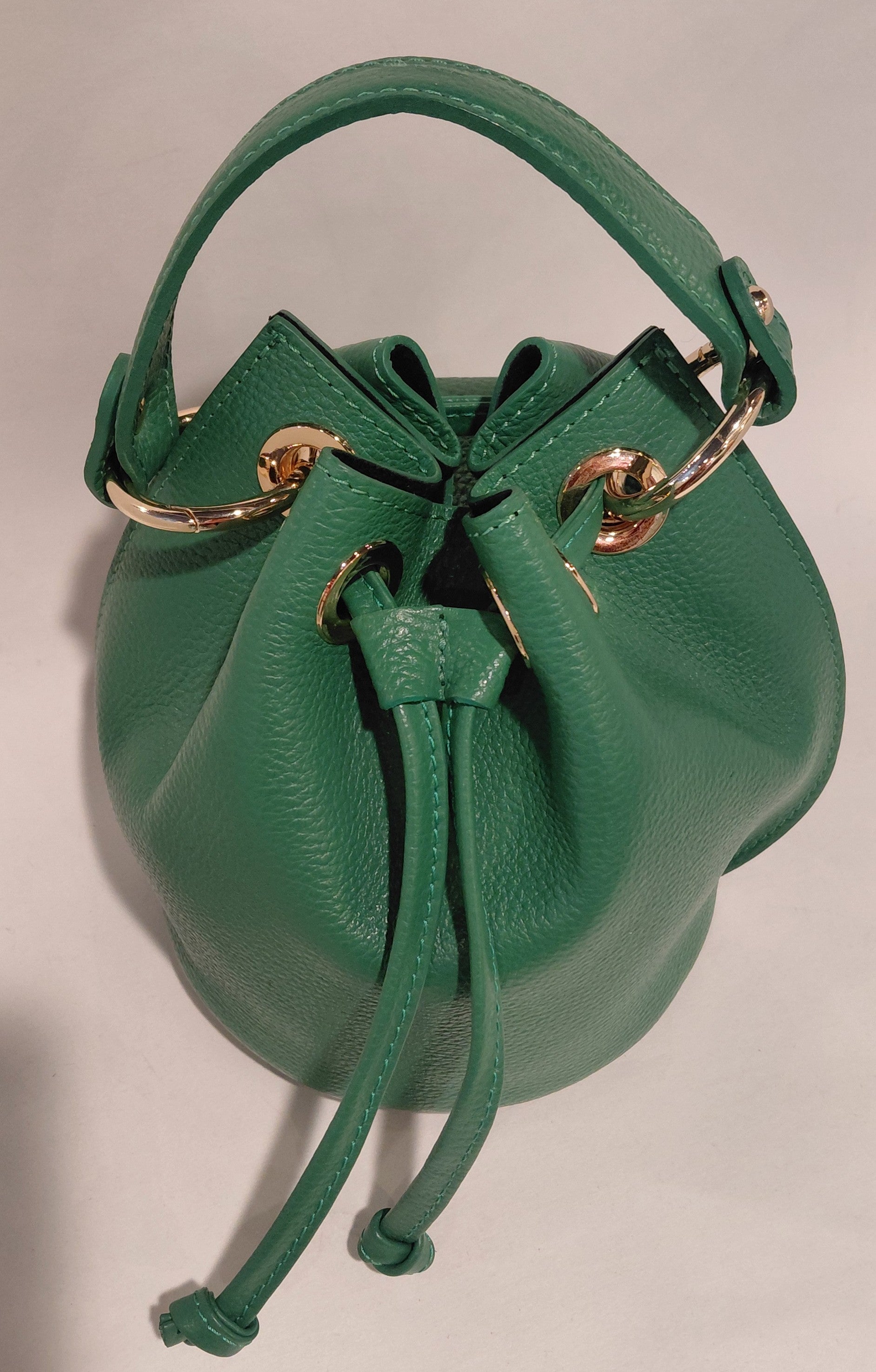 The Ana Paola bucket bag is crafted from high-quality pebbles leather, providing durability and a sophisticated texture. Its Kelly green color offers a vibrant yet professional aesthetic, suitable for various settings. This bag combines functionality with style, catering to individuals seeking both versatility and elegance in their accessories.